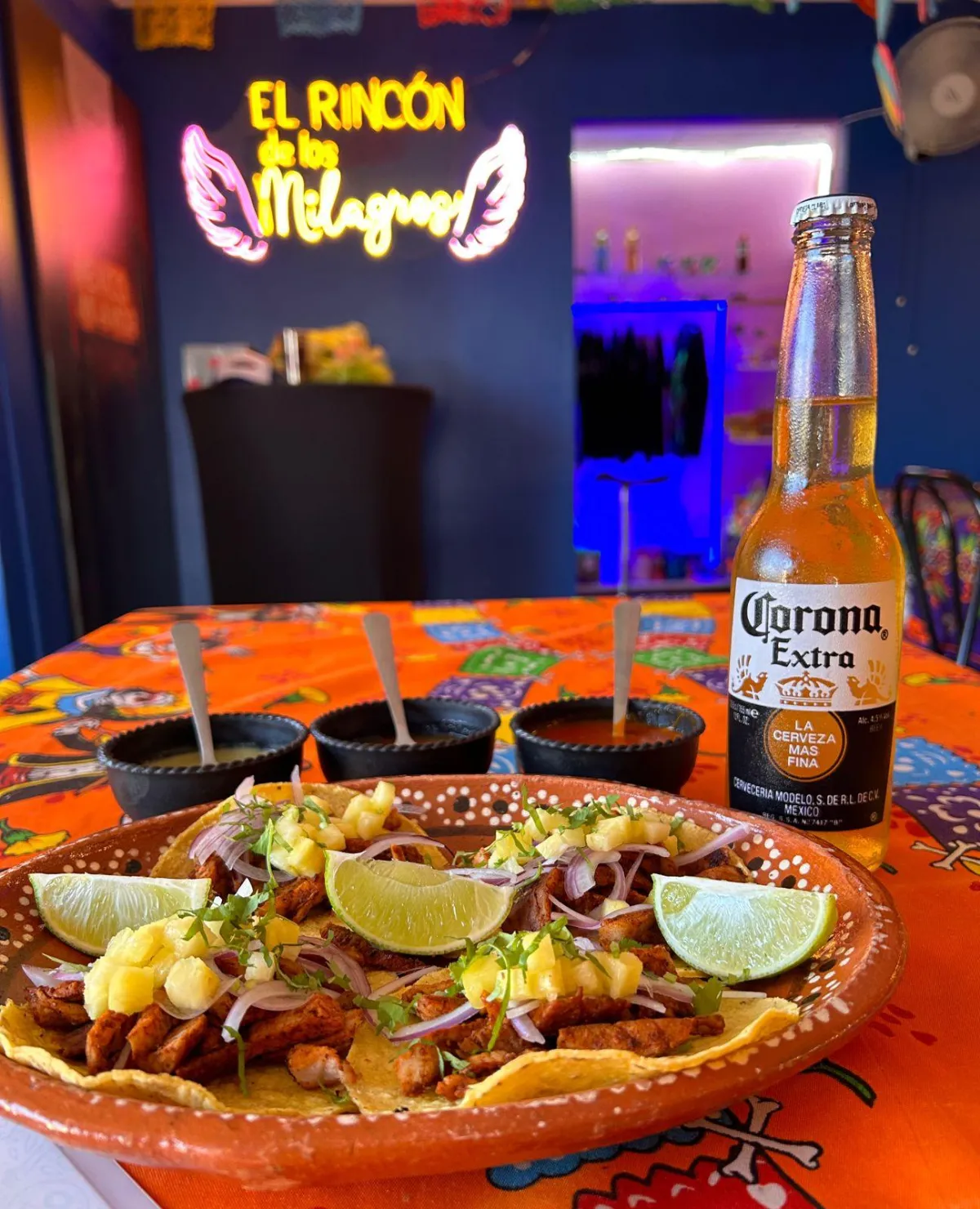 Todo esto se acompaña con una cervecita Corona, una Paloma y si no tomas alcohol con fresco de jamaica delicioso.